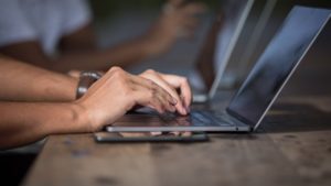 Typing on laptop closeup