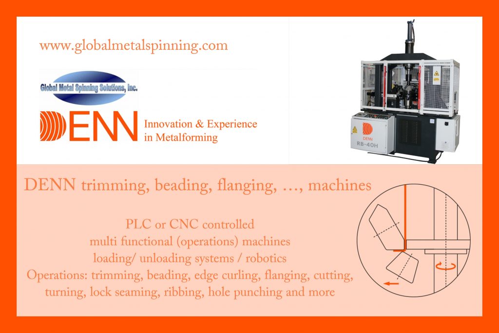 DENN has machinery solutions for operations such as trimming, beading, flanging, ribbing, lock seaming, …., for sheet metal parts. Share this:Post Click to share on Reddit (Opens in new window) Reddit Click to share on WhatsApp (Opens in new window) WhatsApp Click to email a link to a friend (Opens in new window) Email Click to print (Opens in new window) Print Post navigation ← Video: DENN metal spinning & shear forming machinesDENN tube necking-in & closing machines →